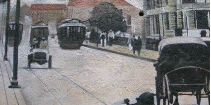 Descendo a Rua Arcoverde em direção à Praça Benedito Calixto, chegamos à Rua Lisboa. Ela margeia a praça retangular e sobe o morro, de forte inclinação. Do lado esquerdo da ladeira, há um mural que chama a atenção.